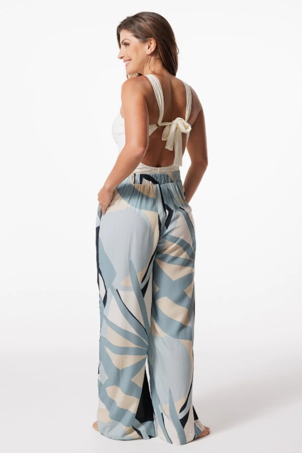 | Modelagem | Pantalona ampla com caimento leve e fluido |