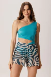 Confeccionado em lycra estampada de alta compressão, o tecido proporciona firmeza e um toque sofisticado, realçando as curvas com leve brilho e caimento elegante. O forro com proteção UV FPU 50+ garante cuidado extra com a pele nos dias de sol.
